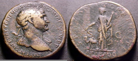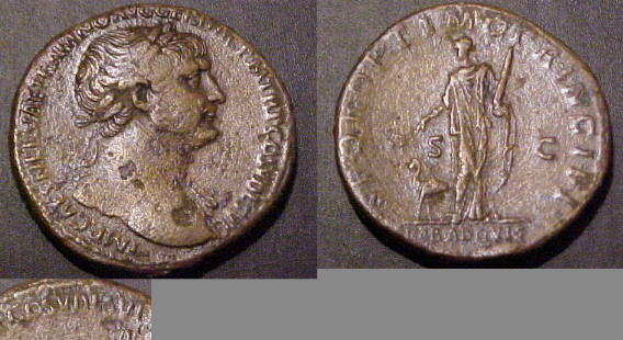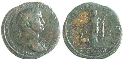 Other Legend combinations in 103-111ad period: obv : IMP CAES NERVAE TRAIANO AVG GER DAC PM TRP COS V PP rev: ARAB ADQ SPQR OPTIMO PRINCIPI SC RIC465 Bust right /aegis This type also appears with bust right draped left shoulder (Banti21)