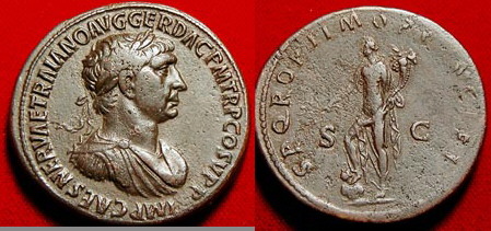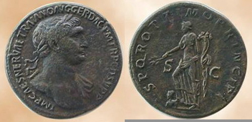 It was also struck in 112-114ad with the following legend: obv : IMP CAES NERVAE TRAIANO AVG GER DAC PM TRP COS VI PP rev: SPQR OPTIMO PRINCIPI SC Bust right RIC539 Somewhat common reverse---cuirassed busts quite Scarce.
