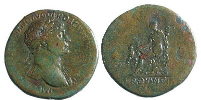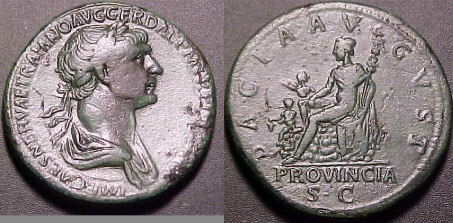 obv : IMP CAES NERVAE TRAIANO AVG GER DAC PM TRP COS VI PP rev: DACIA AVGVST PROVINCIA SC 32mm 23.9g Bust right, draped 112-114ad Banti 55 (no drapery on rock Banti 56) This type appears with several bust variations: