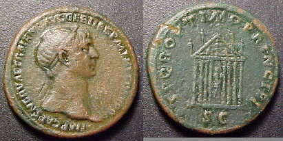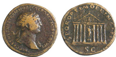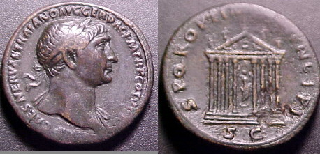 Architectural types 11. Temple of Honos This coin type is commonly referred to as the temple of Honos which Trajan restored in the period 107-113ad. There are other theories as well: a temple of deified Nerva or the temple of Trajan's Forum.