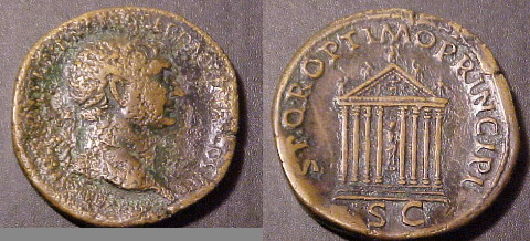 from the Matthew Sersch collection obv : IMP CAES NERVAE TRAIANO AVG GER DAC PM TRP COS V PP rev: SPQR OPTIMO PRINCIPI SC 34mm 26.5g Bust right, draped left shoulder 103-111ad RIC575 example above has narrower temple (Banti 290)